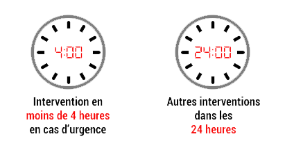 La réactivité et la rapidité d’intervention sont dans notre culture. Nous savons qu’un équipement en panne est toujours pour nos clients une source de coût, de pertes, de risques et de stress. Notre objectif est de mettre un terme, le plus rapidement possible, à cette situation anxiogène afin que nos donneurs d’ordre puissent reprendre leur travail en toute sérénité.